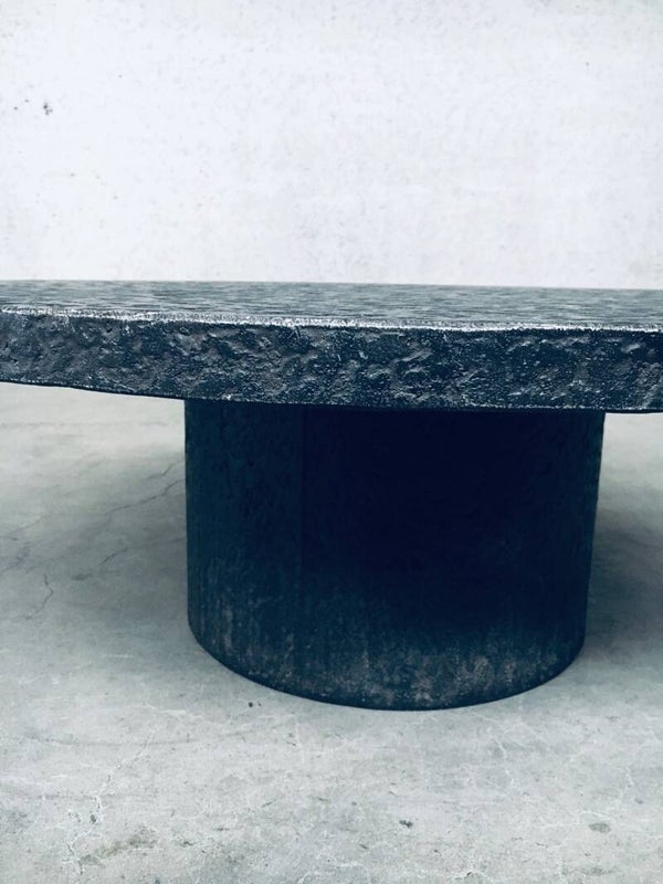 Vintage Postmodern Design Black Stone Coffee Table, made in the 1980's / 90's. Hollow round base and top covered with black lookalike stone structure. In very good condition. Measures 100cm x 35,5cm x 100cm.