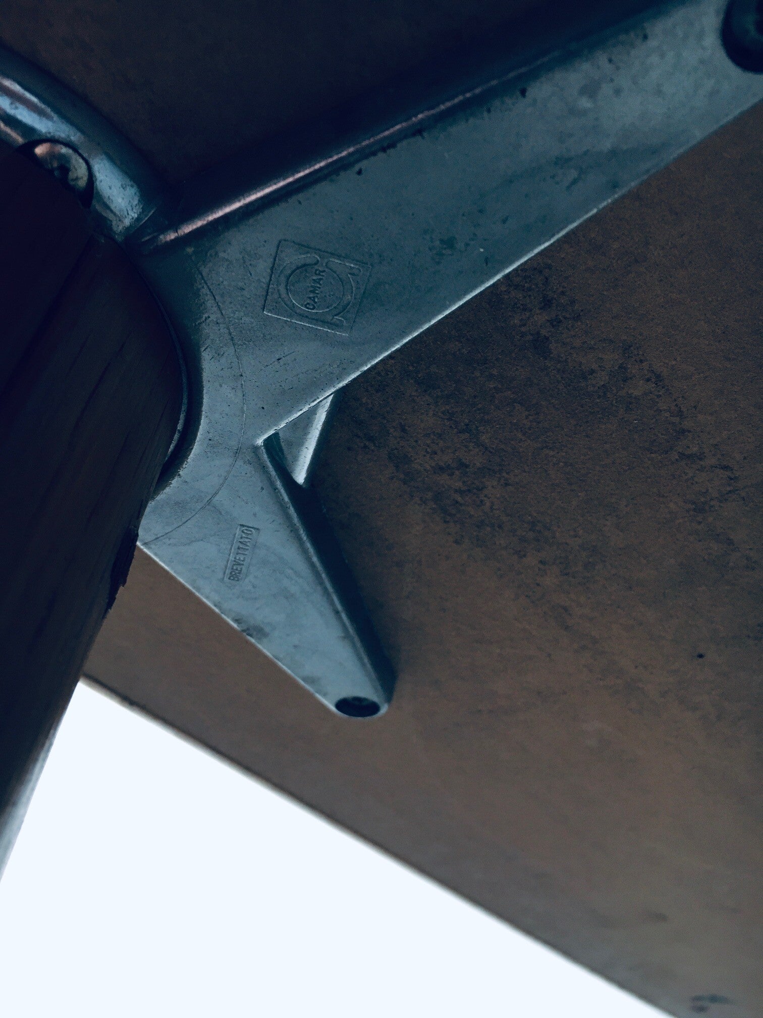 Vintage Postmodern Design Kitchen Table by Gamar, Italy 1970's. White and beige speckeled formica top in rounded wooden frame on round constructed wooden legs. Legs are adjustable in height to level out. Marked on the metal aluminium cast attachements; Brevettato Gamar. Well designed small dining, side or kitchen table. This is in very good, original condition. Measures 75cm x 120cm x 75cm.