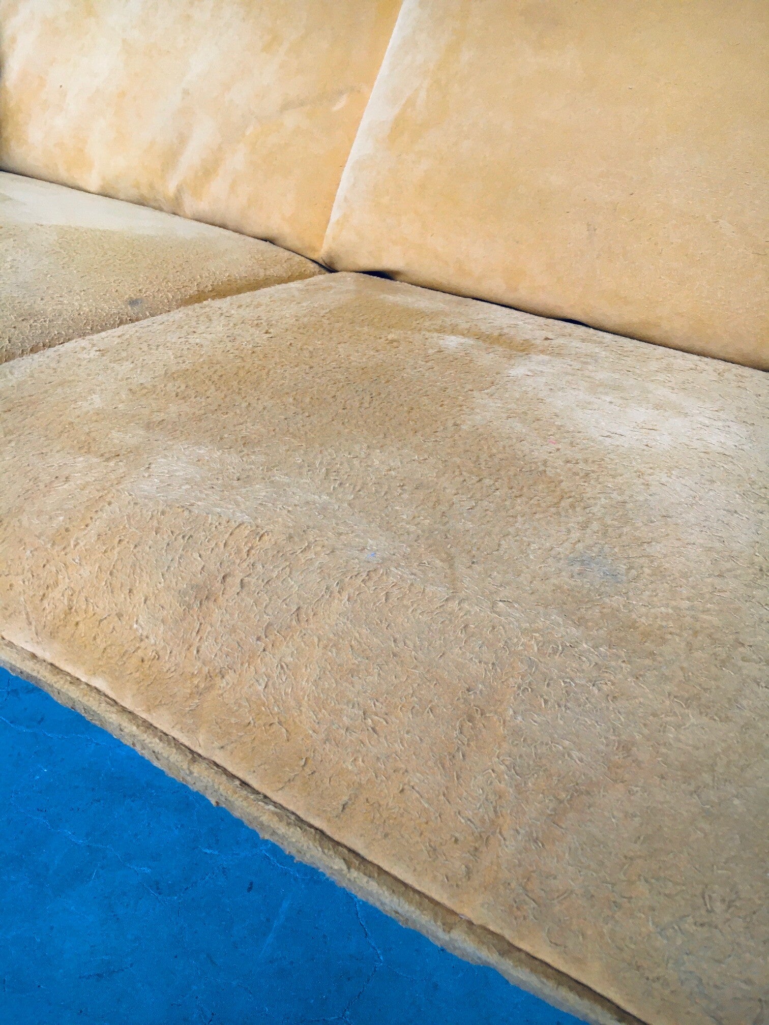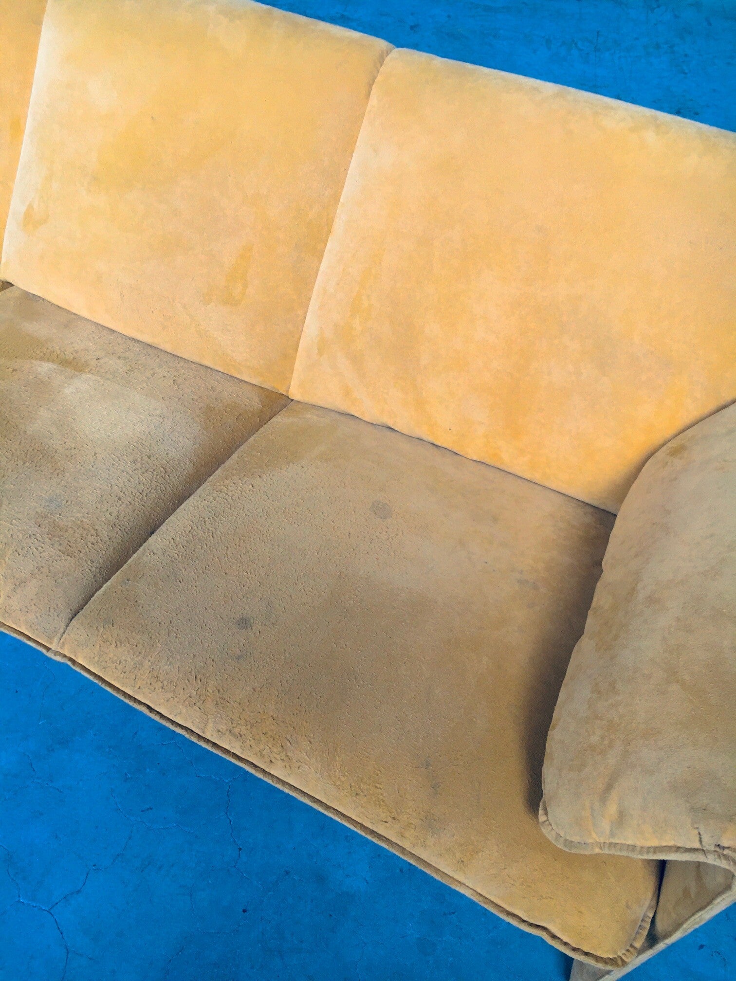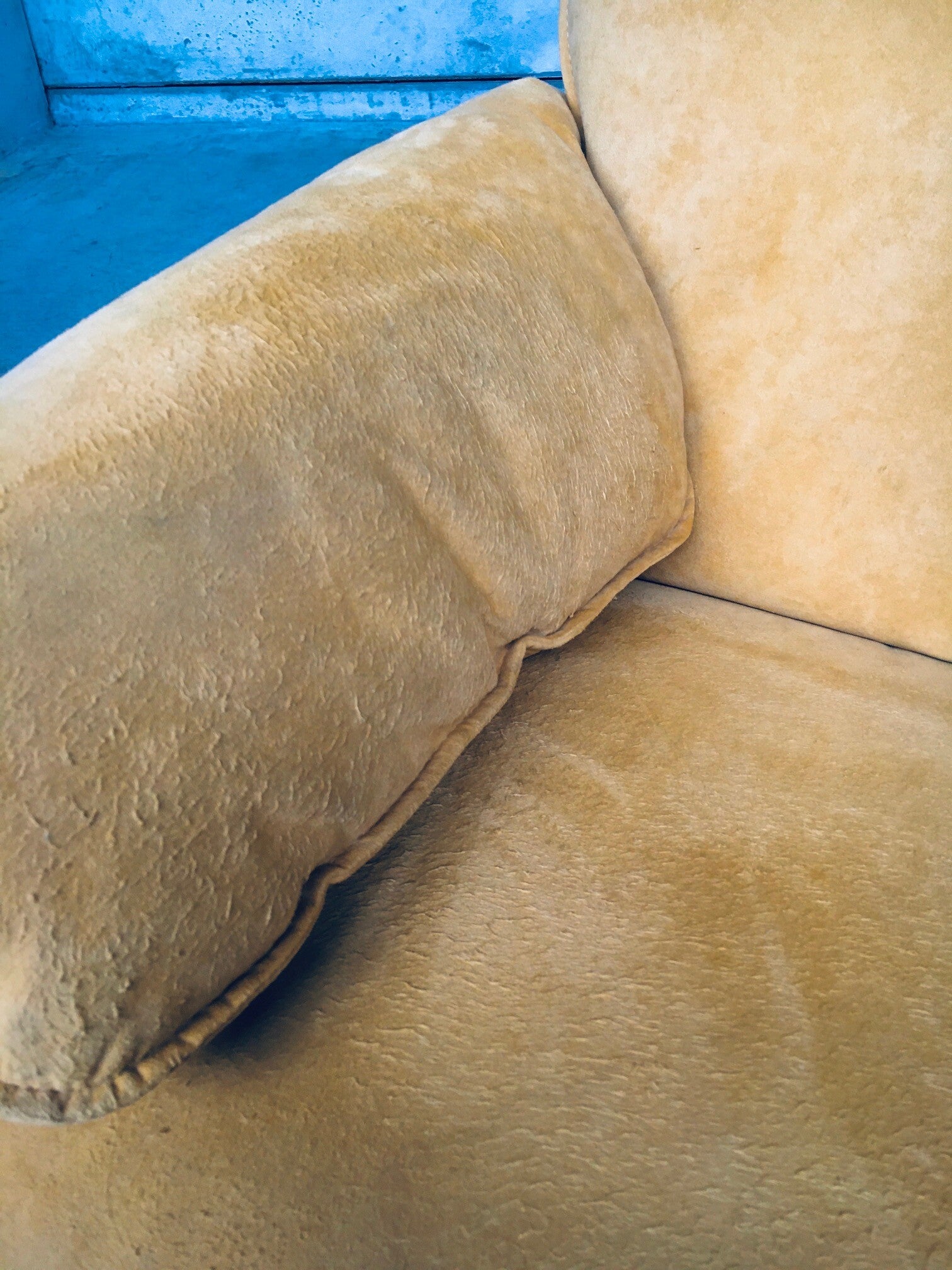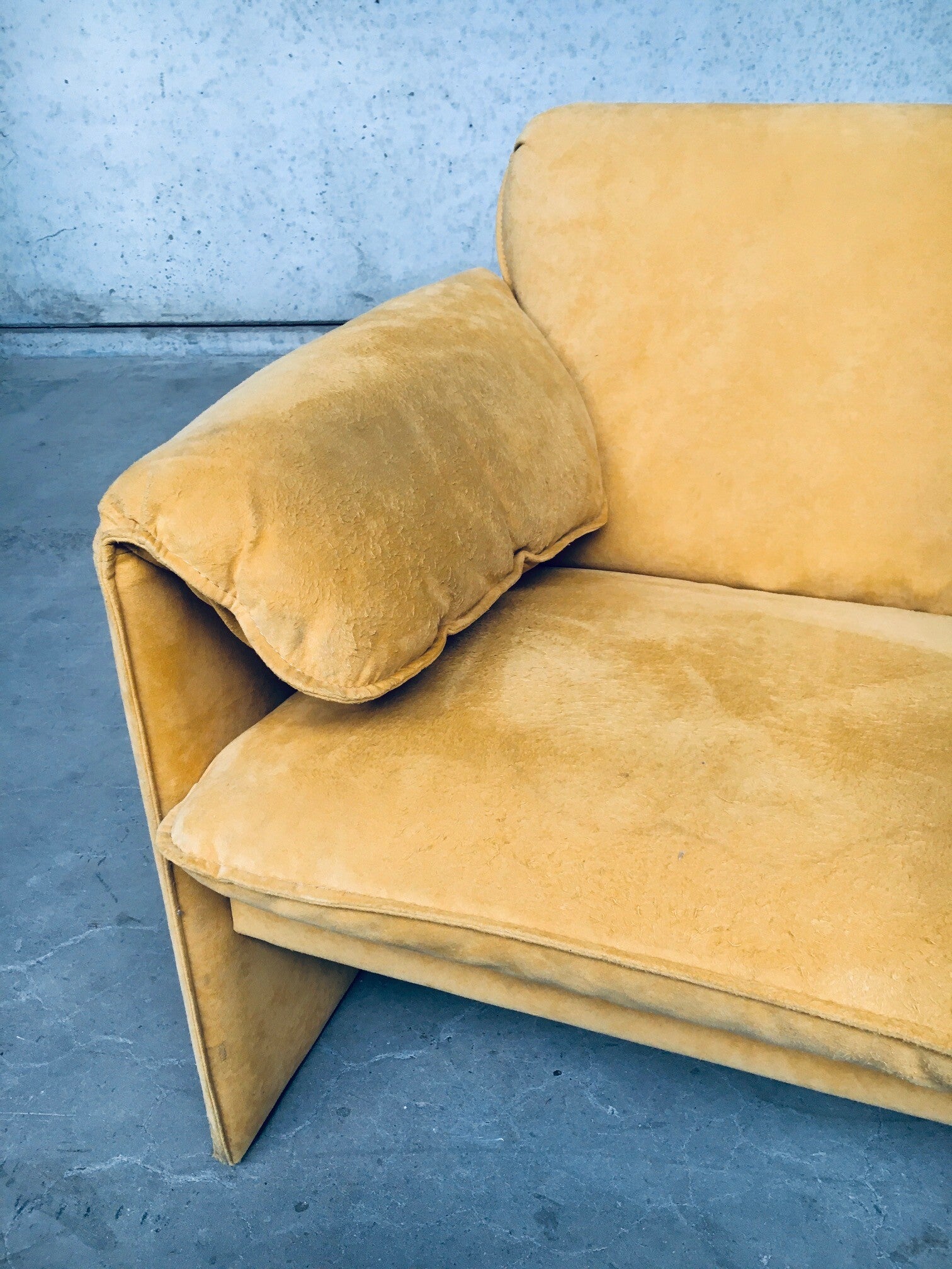 Vintage Postmodern Design BORA BORA 3 seat Sofa by Axel Enthoven for Leolux, Netherlands 1980's. Yellow Alcantara version. Classic Leolux design. The sofa has some dirt spots and looks well used on the seats and armrests. Alcantara needs some shaving and cleaning. Otherwise in good condition. Measures 77cm x 200cm x 84cm.