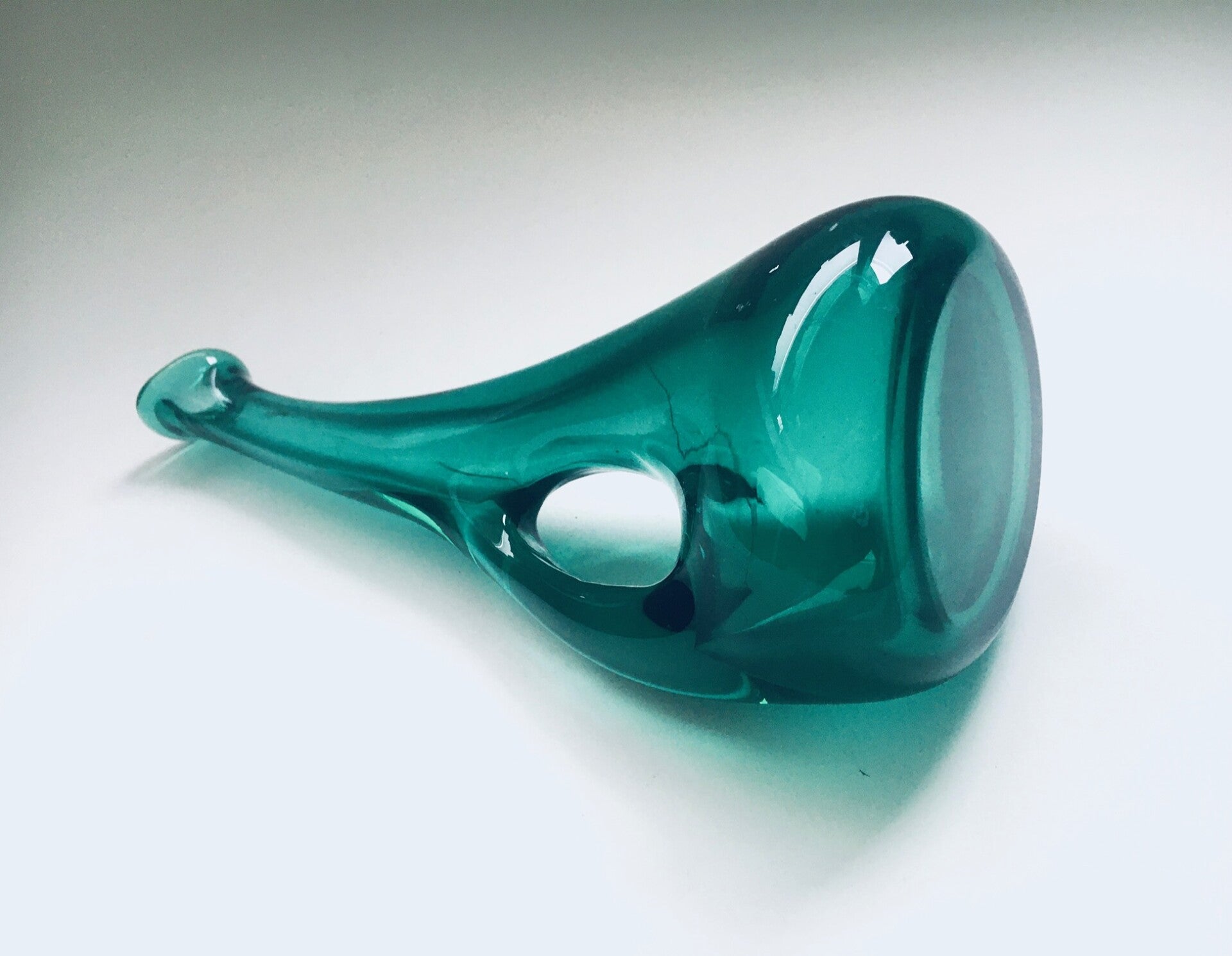 1960's Handblown Emerald Green Glass Fluted Decanter Vase