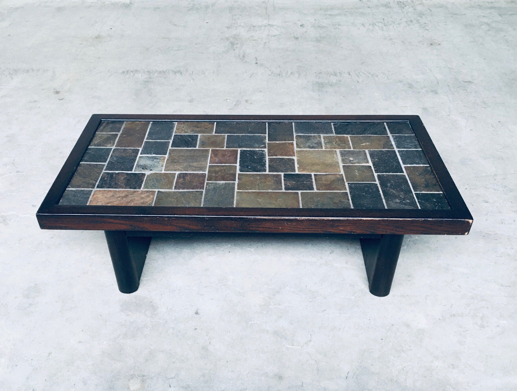 Brutalist Design in Style Slate Tile Inlay Coffee Table, Belgium 1970's