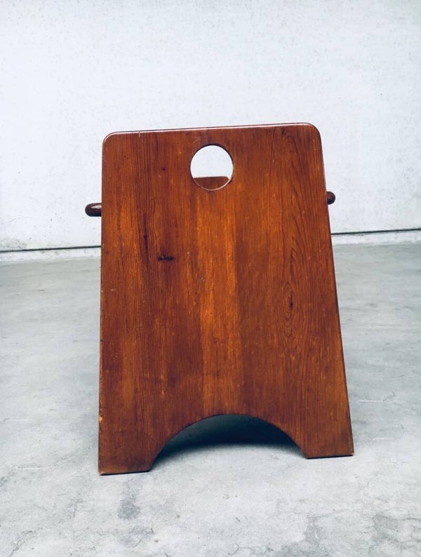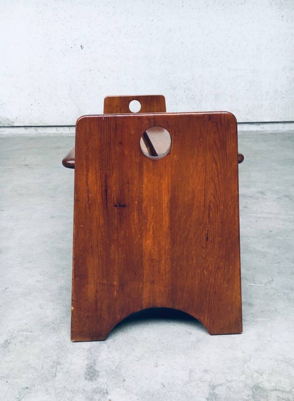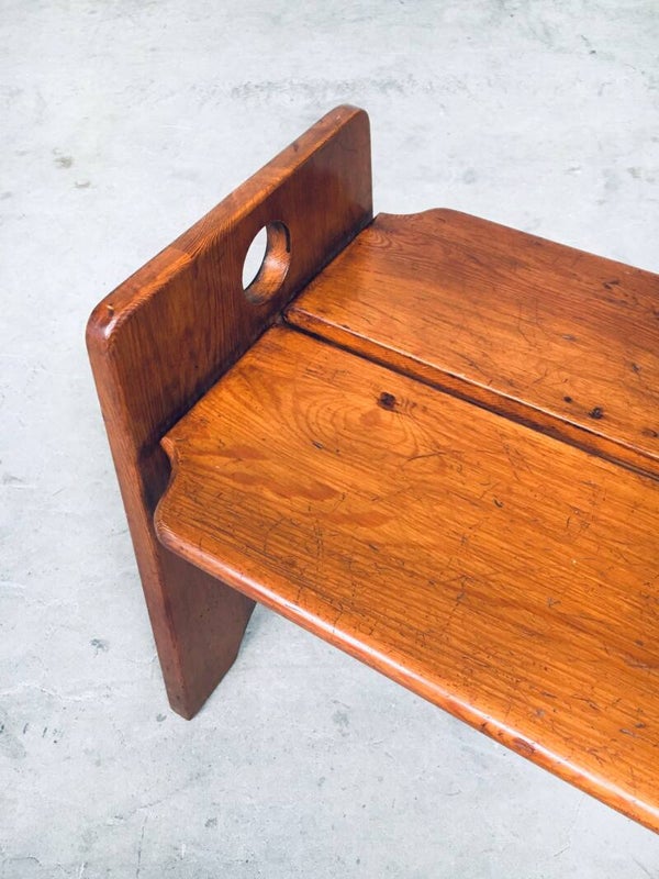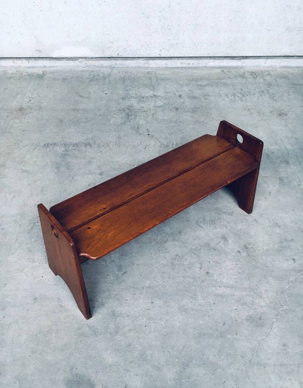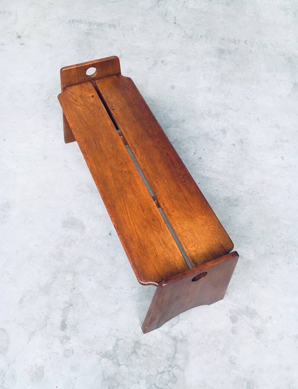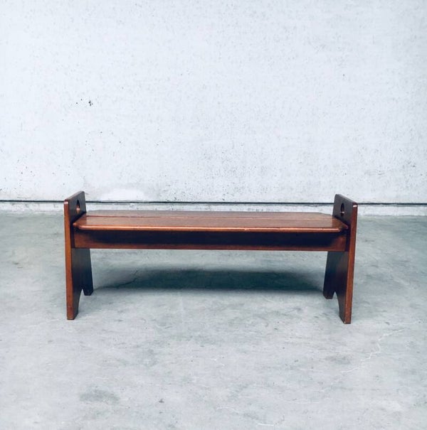Vintage Midcentury Modern Dutch Design Side Bench, made in the Netherlands 1960's. Solid stained beech wood constructed bench. Very nice in design and finish. In very good, original condition, one small piece broken at one base (see pictures). Measures 125cm x 53cm x 42cm.