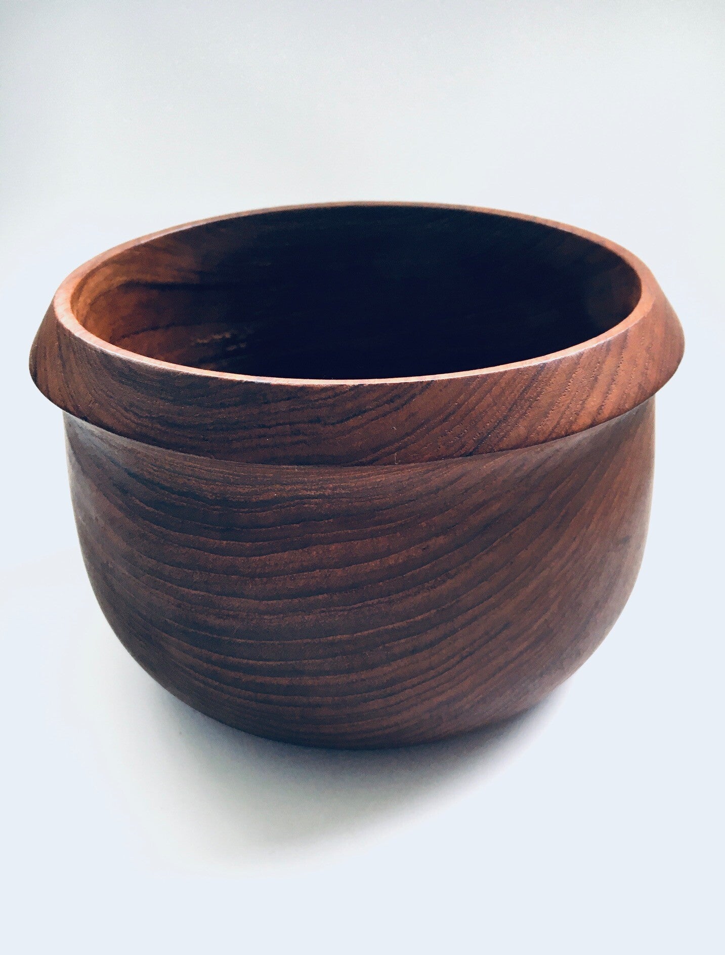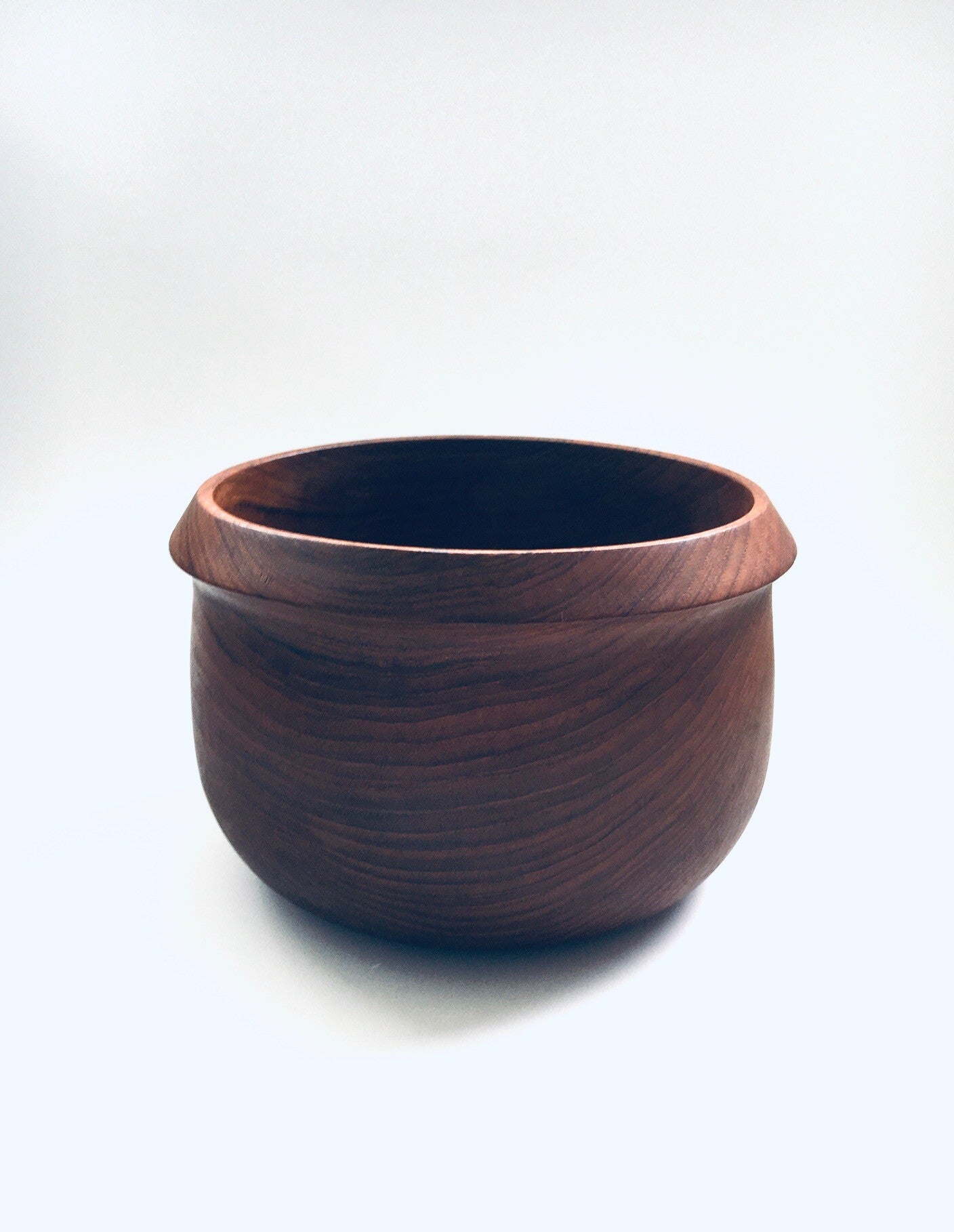 Vintage Midcentury Modern Scandinavian Design Teak wooden edged bowl, made in Denmark 1960's. Solid teak wood one piece turned bowl with trim edge. In very good condition. Measures 13,5cm x 20,5cm x 20,5cm.
