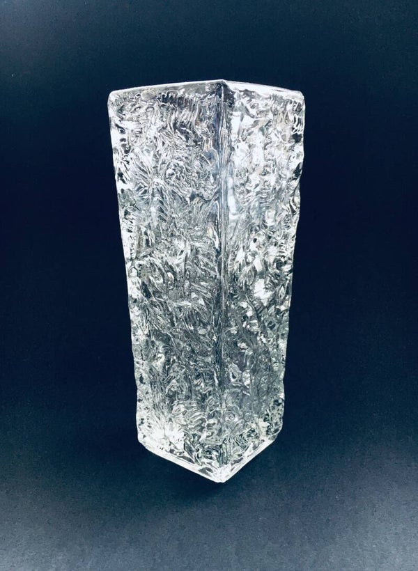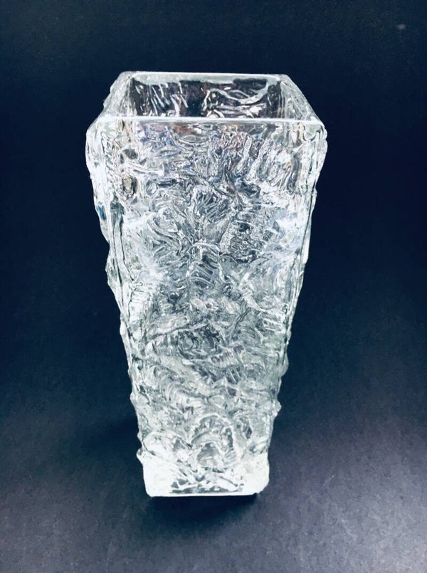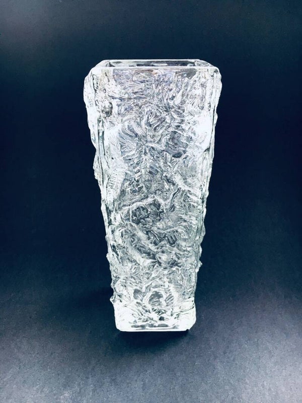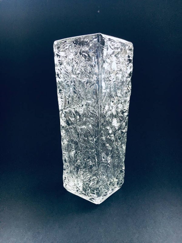 Midcentury Modern Design Ice Glass Square Vase, Germany 1960's