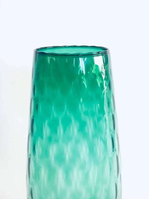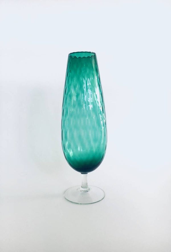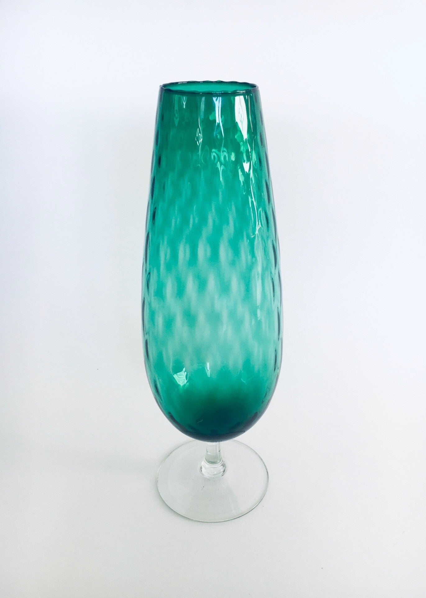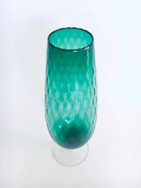 Vintage Midcentury Modern Italian Design Empoli Glass Green Gobbler Vase, made in Italy 1960's. Green pressed glass vase with clear stem base. In very good condition. Measures 49,5cm x 15cm x 15cm.