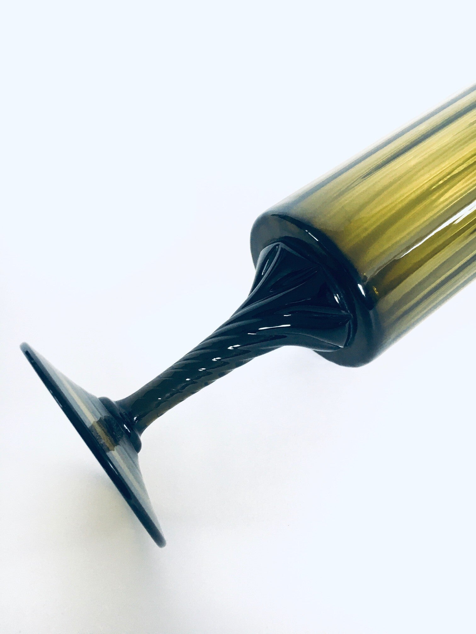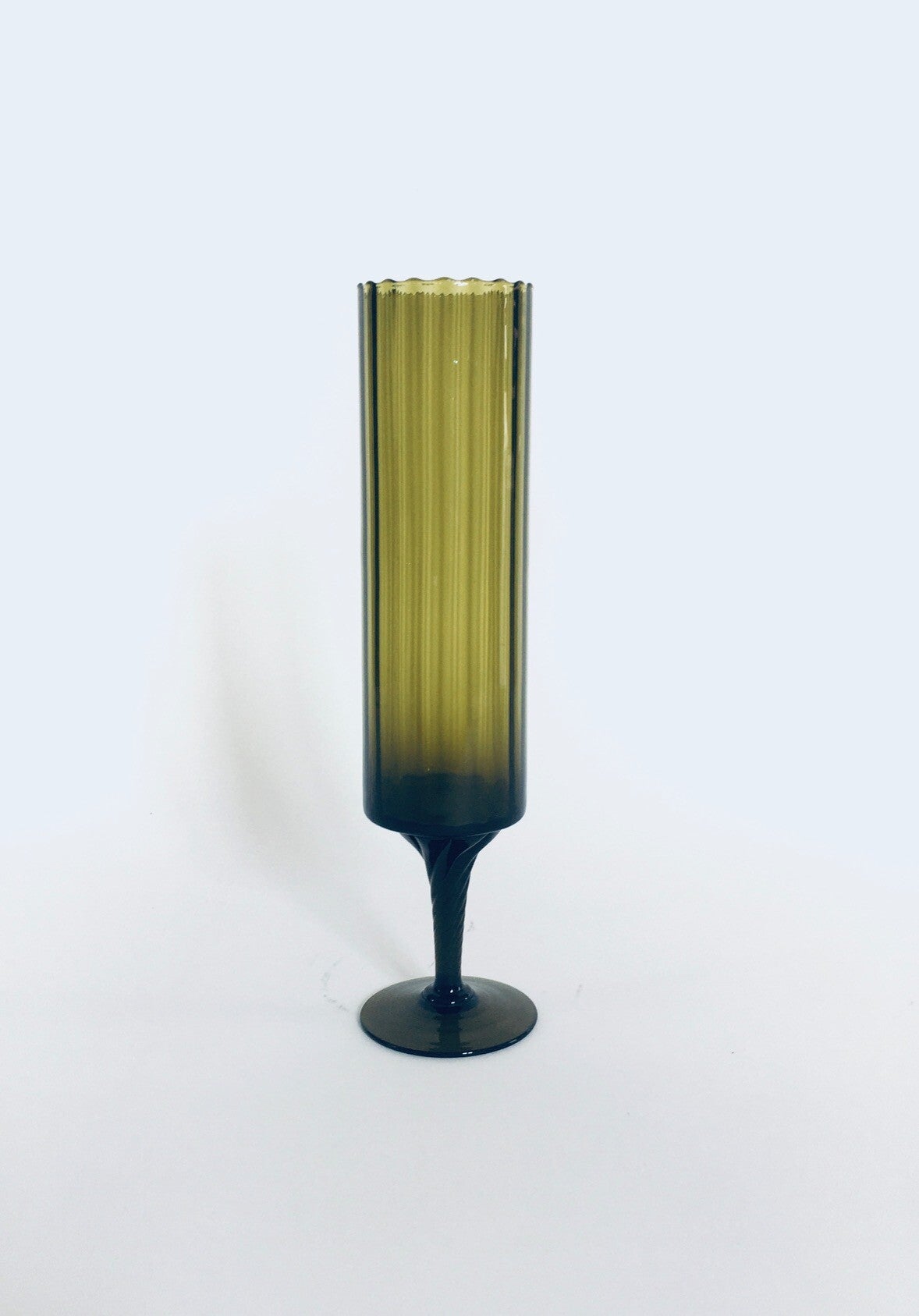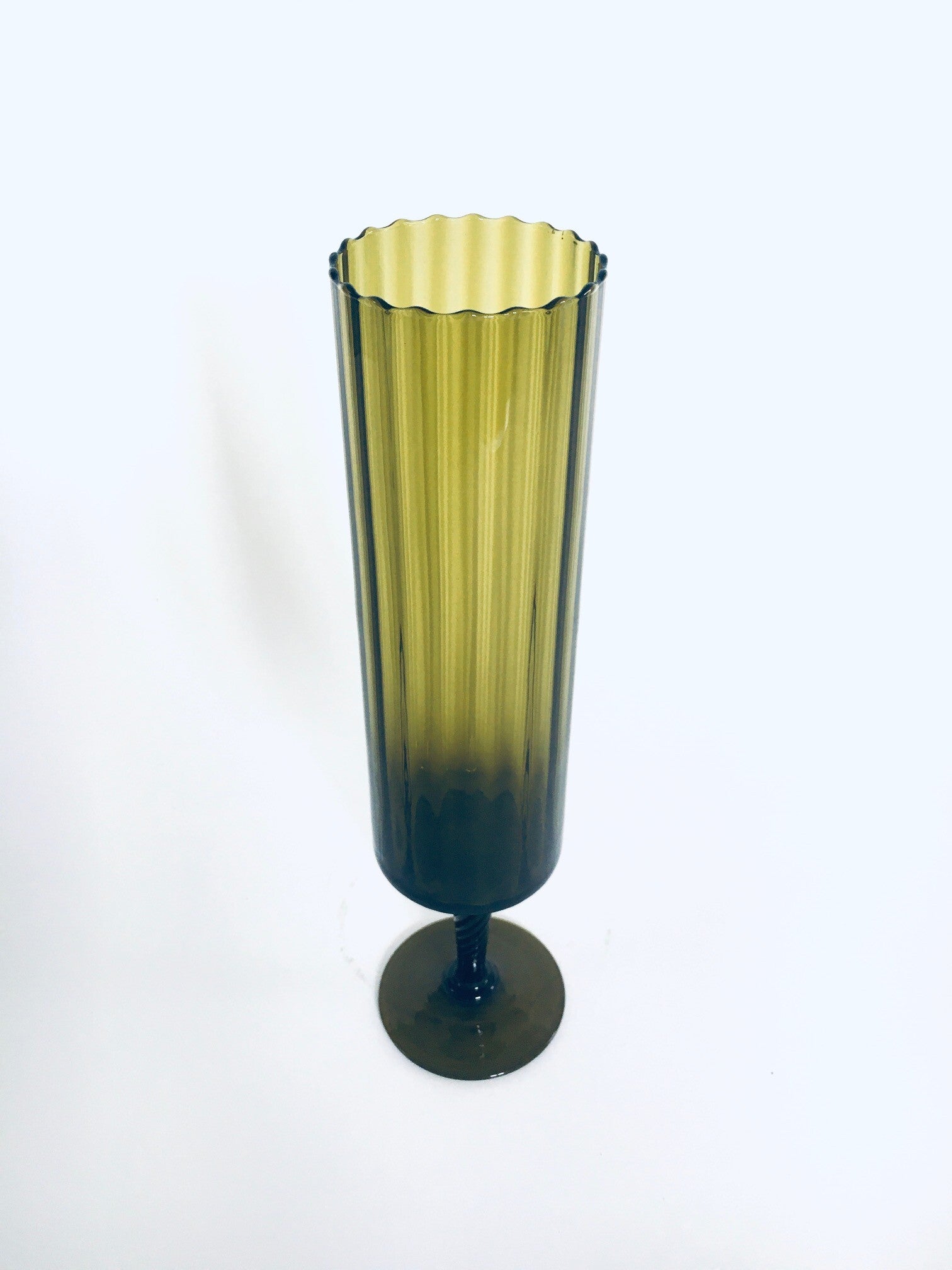 Vintage Midcentury Modern Scandinavian Design Art Glass Vase, made in Finland 1960's. Kaki glass vase with striped motif in very good condition. Measures 35,5cm x 9cm x 9cm.