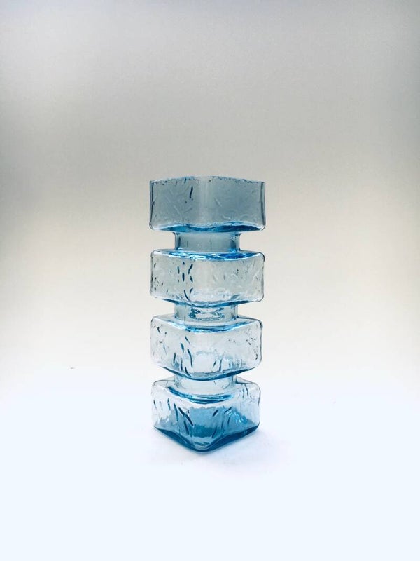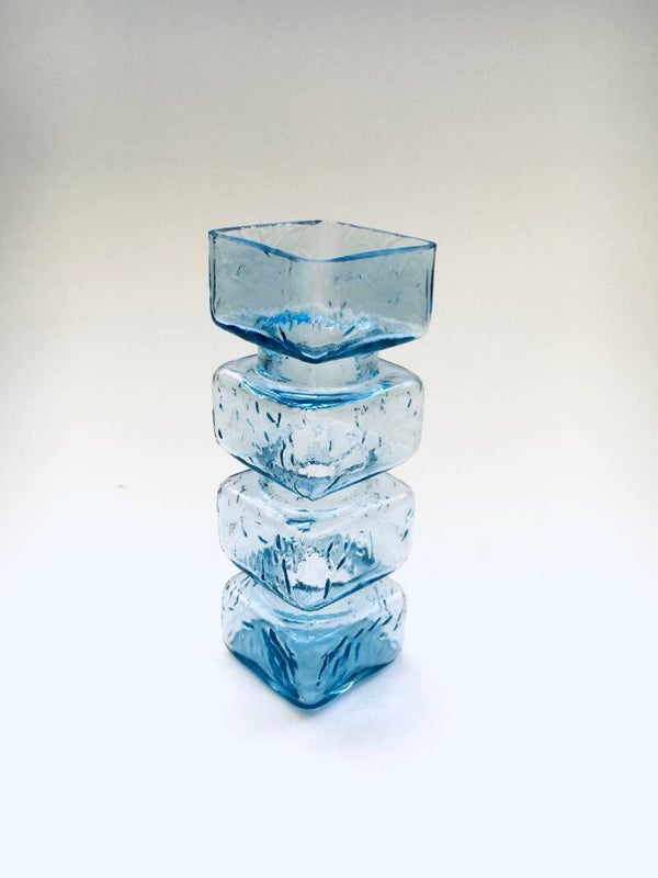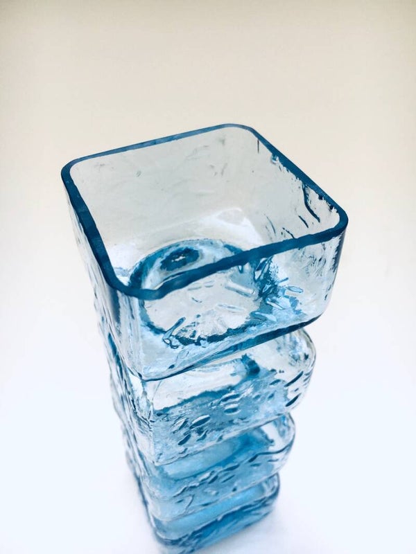 Vintage Midcentury Modern Scandinavian Design Glass Vase by Helena Tynell, made in Finland 1960's. Pale blue pressed glass vase. In the PALA Series. Riihimaki, Riihimaen Lasi Oy production. In very good condition. Measures 14,5cm x 5cm x 5cm.
