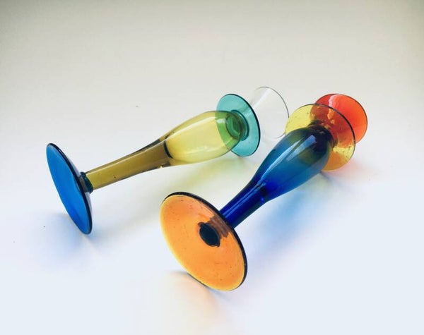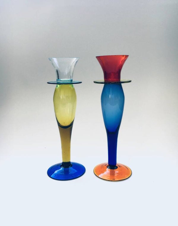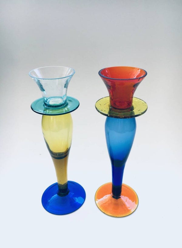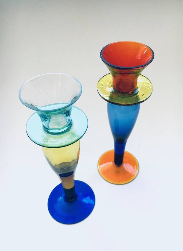 Murano Art Glass Memphis Style Candle Holder Set, 1980's Italy