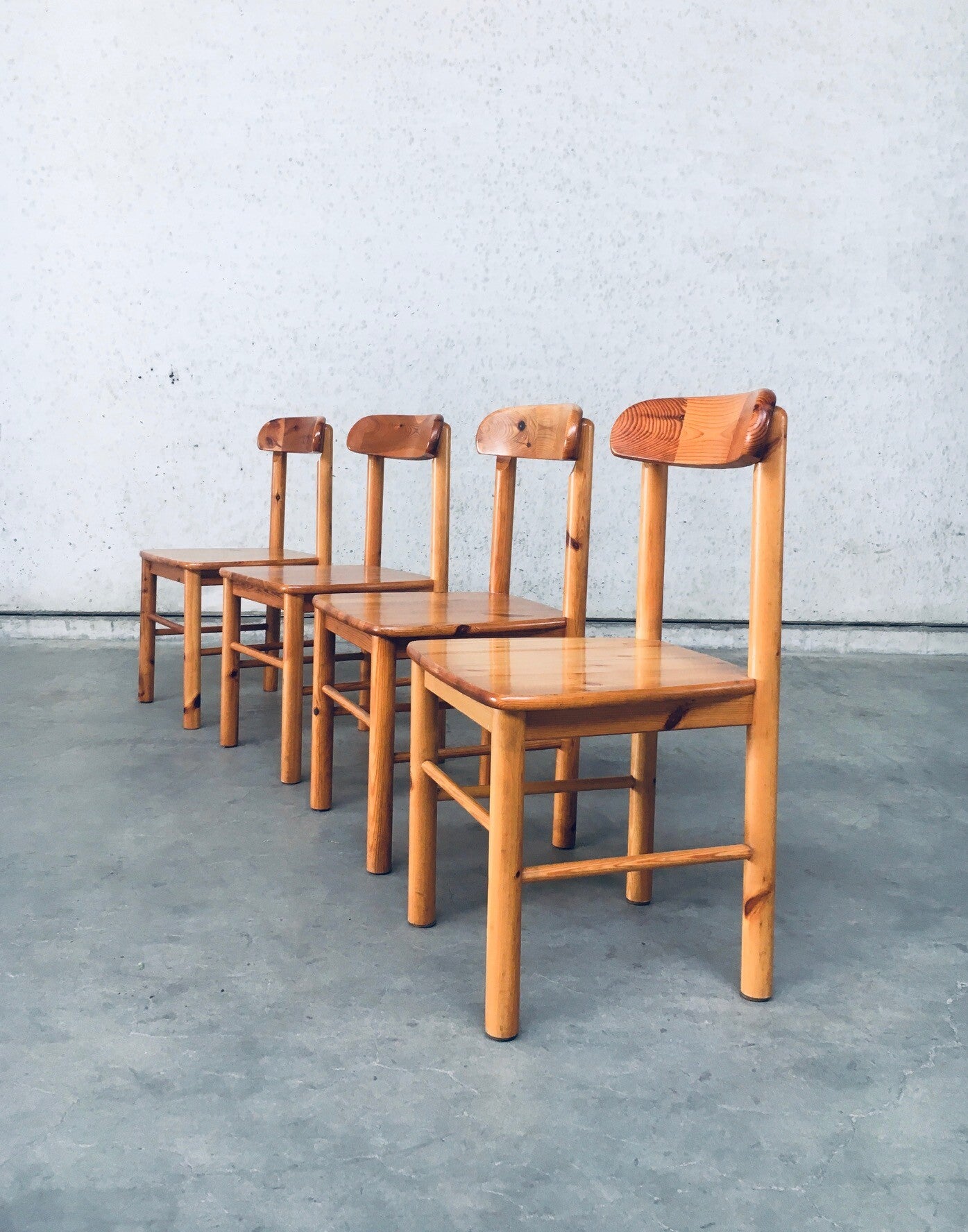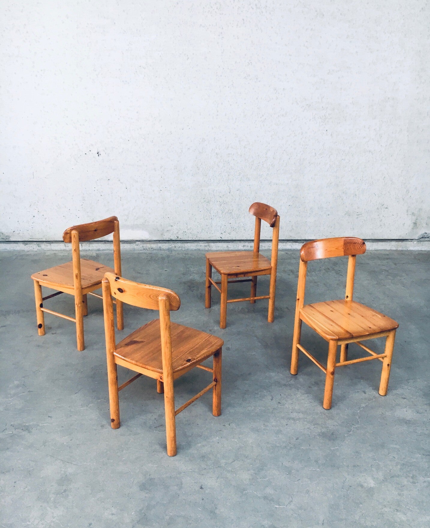 Vintage Scandinavian Design Danish Pine Chairs & Table set in the Style of Rainer Daumiller, made in Denmark circa 1975. 4 chairs and kitchen size dining table. All pine construction. All are in good condition with signs of use. Each chair measures 84cm x 45cm x 45cm, table measures 73cm x 120cm x 79cm.