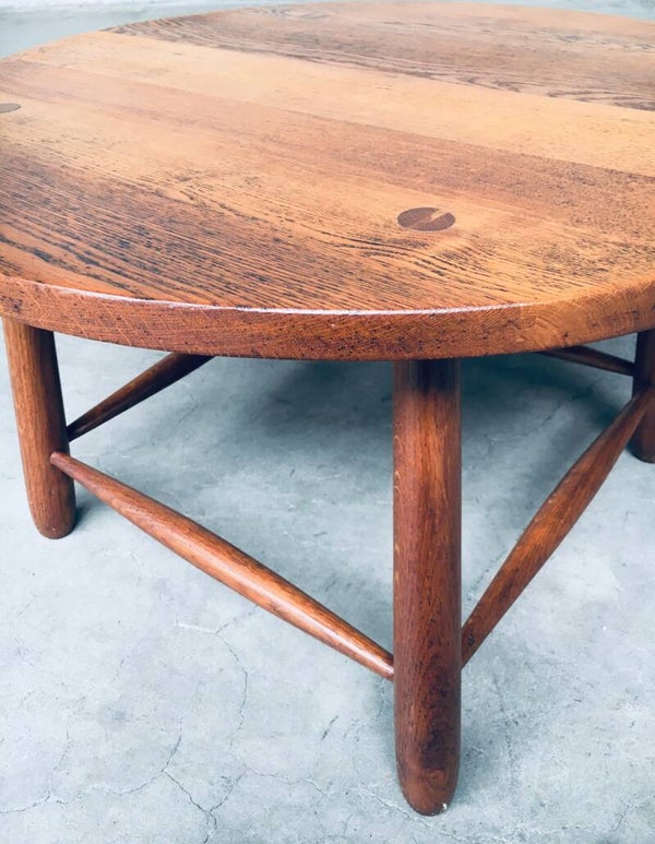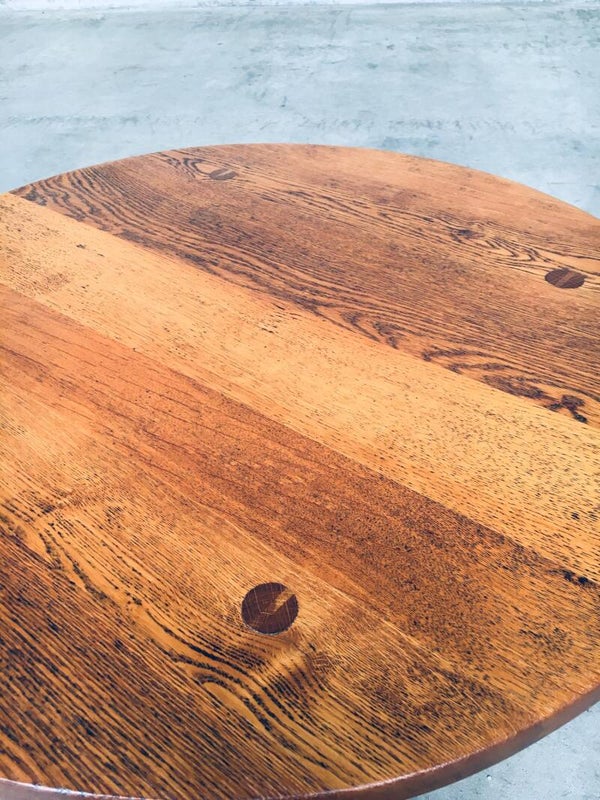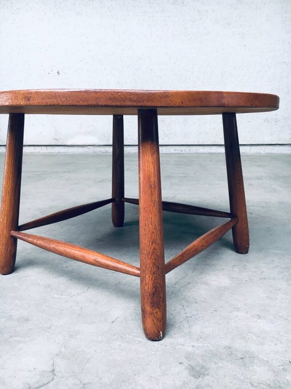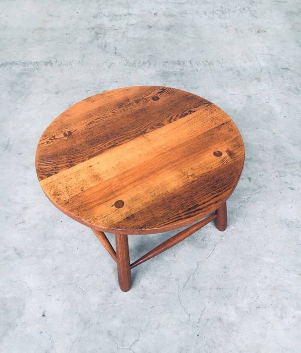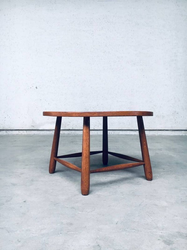 Vintage Rustic Wabi Sabi Design solid oak side or coffee table. Made in Belgium 1950's. Solid oak constructed. In perfect condition. Measures 48cm x 78cm x 78cm.