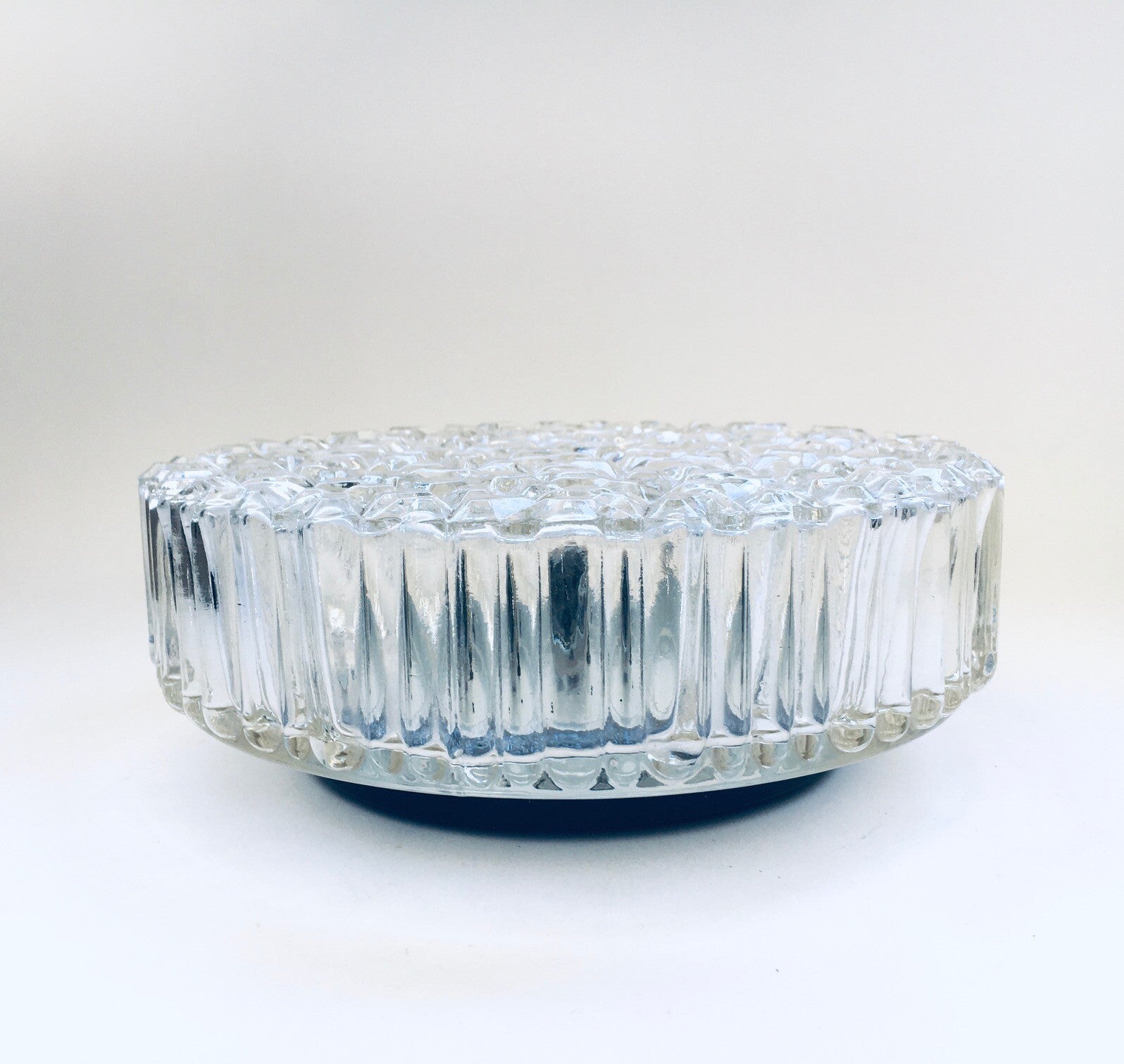 Vintage Midcentury Modern Design Glass Sconce Wall Lamp by Motoko Isshi for Staff Leuchten, made in Germany 1970's. Pressed Ice Structured heavy glass sconce. In very good condition. Measures 10cm x 27cm x 27cm.