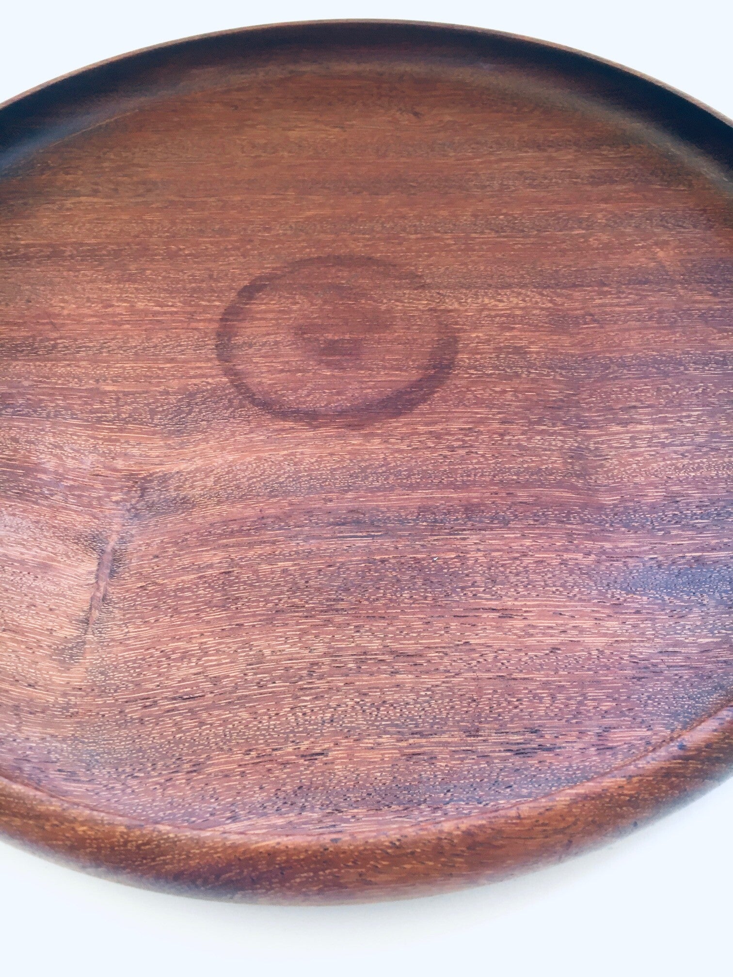 Vintage Midcentury Modern Scandinavian Design Large Teak Flat Bowl Plate, made in Denmark 1960's. Solid Teak wood constructed bowl or dish. The bowl has a water mark in the middle. Otherwise in very good condition. Beautiful bowl. Measures 4cm x 39cm x 39cm.