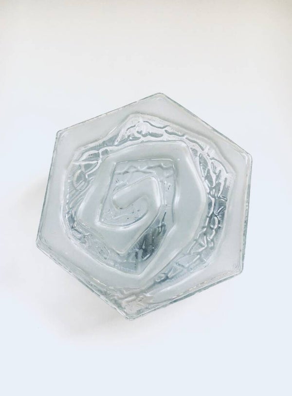 Vintage Midcentury Modern Design Glass Sconce Wall Lamp. Made in Germany 1960's. Hexagonal clear pressed glass with spiral design in matted glass. In very good condition. Measures 9,5cm x 17,5cm x 17,5cm.
