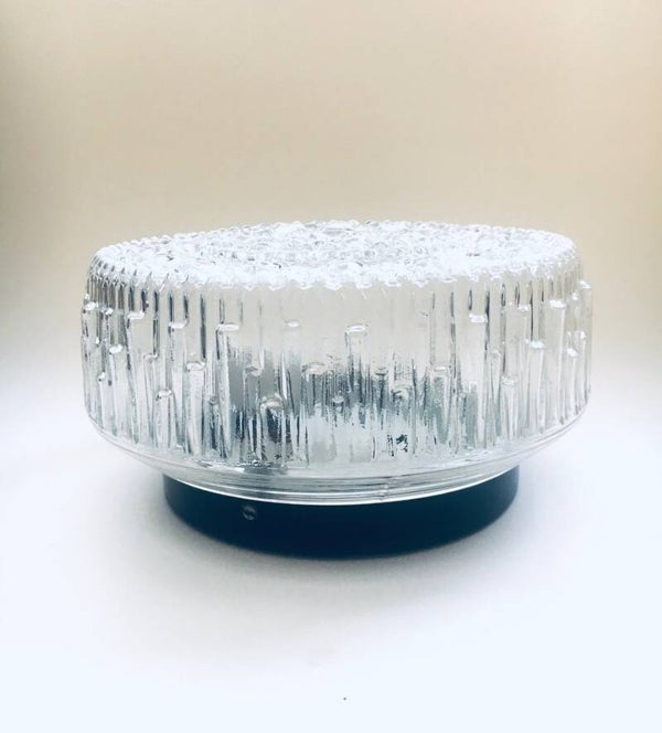 Vintage Midcentury Modern Design Patterned Glass Sconce Wall Lamp. Clear pressed glass with all over pattern. In very good condition. Measures 10,5cm x 20cm x 20cm.