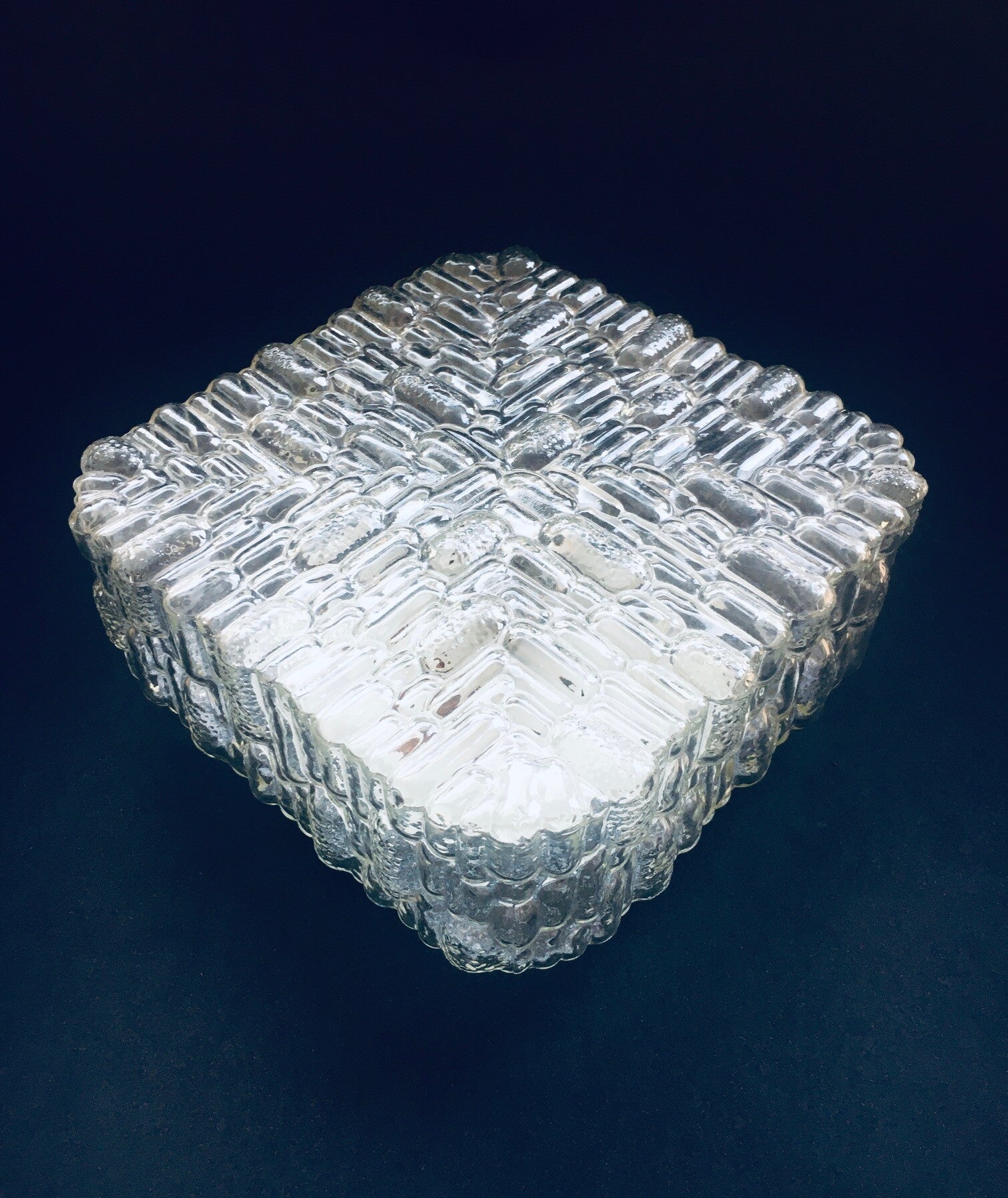 Vintage Midcentury Modern Square Glass Sconce Wall Lamp. Made in Germany 1960's. Clear pressed glass with Pebble Stone pattern motif. In very good condition. Measures 11cm x 23cm x 23cm.