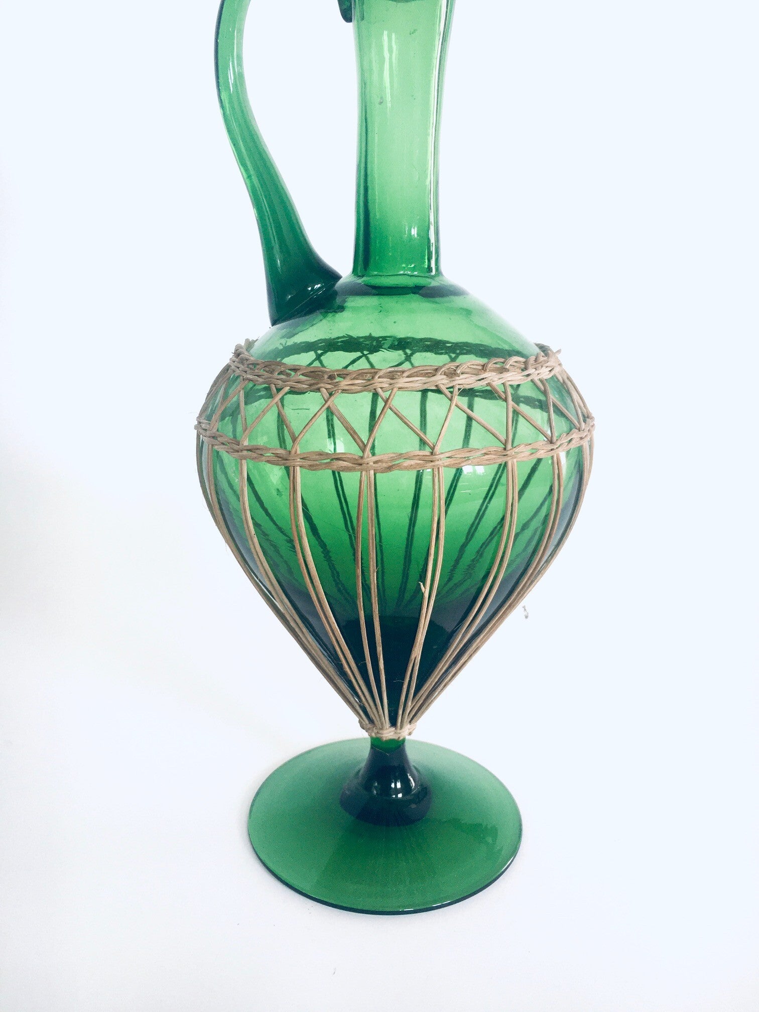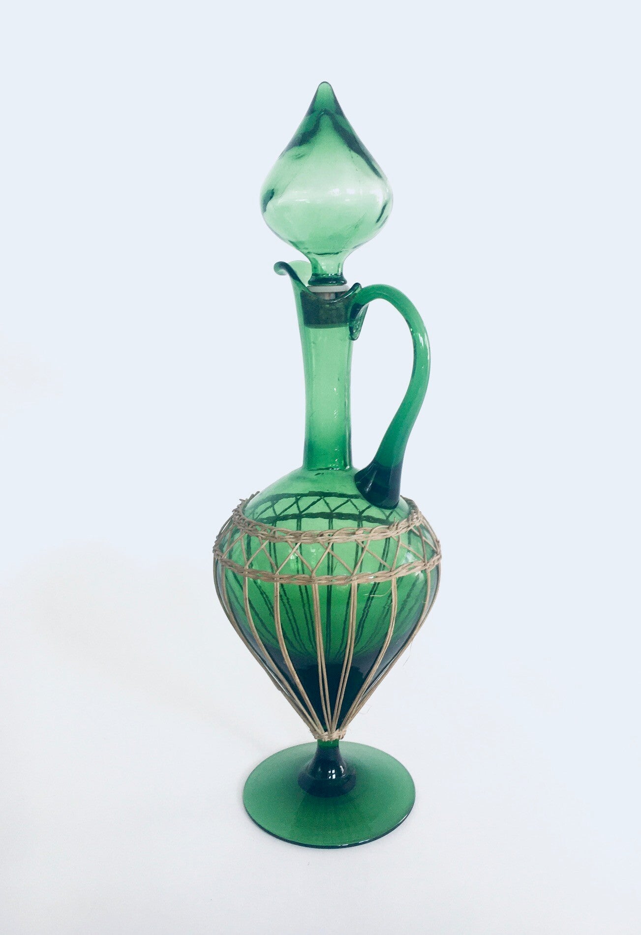 Vintage Empoli Green Glass Wine Decanter Bottle, Italy 1960's