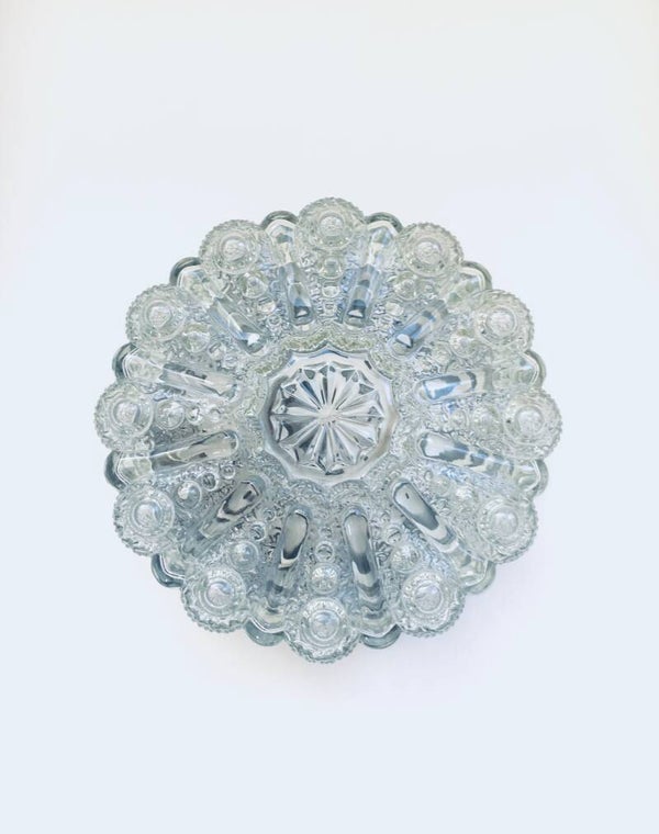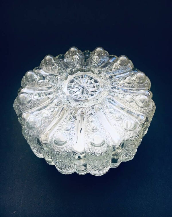 Vintage Midcentury Modern Design Raised Flower Glass Sconce Wall Lamp by RZB Leuchten. Made in West Germany, 1960's. Clear pressed glass with a raised flower motif. In very good condition. Measures 11cm x 20cm x 20cm.