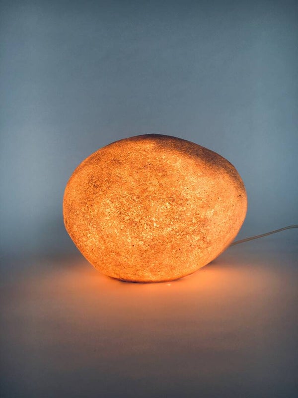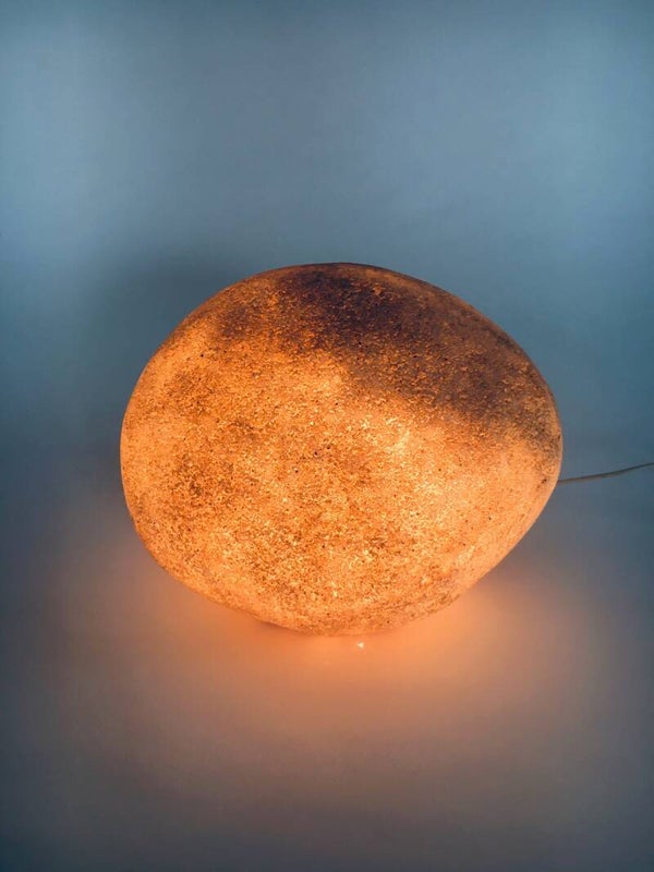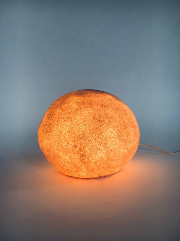 Vintage original 'DORA' Moon Rock Stone Floor Lamp by André Cazenave for Luminaires Roland Jamois, made in France 1970's. Original label inside the lamp. Created from polyester resin and marble powder. The lights create a beautifully luminous, atmospheric ambient glow that is reminiscent of the moon. Each was hand-finished so every piece is unique. Standard E14 lamps with screw fitting. Comes in very good, original condition with normal wear for it's age and use. Measures 24cm x 31cm x 26cm.