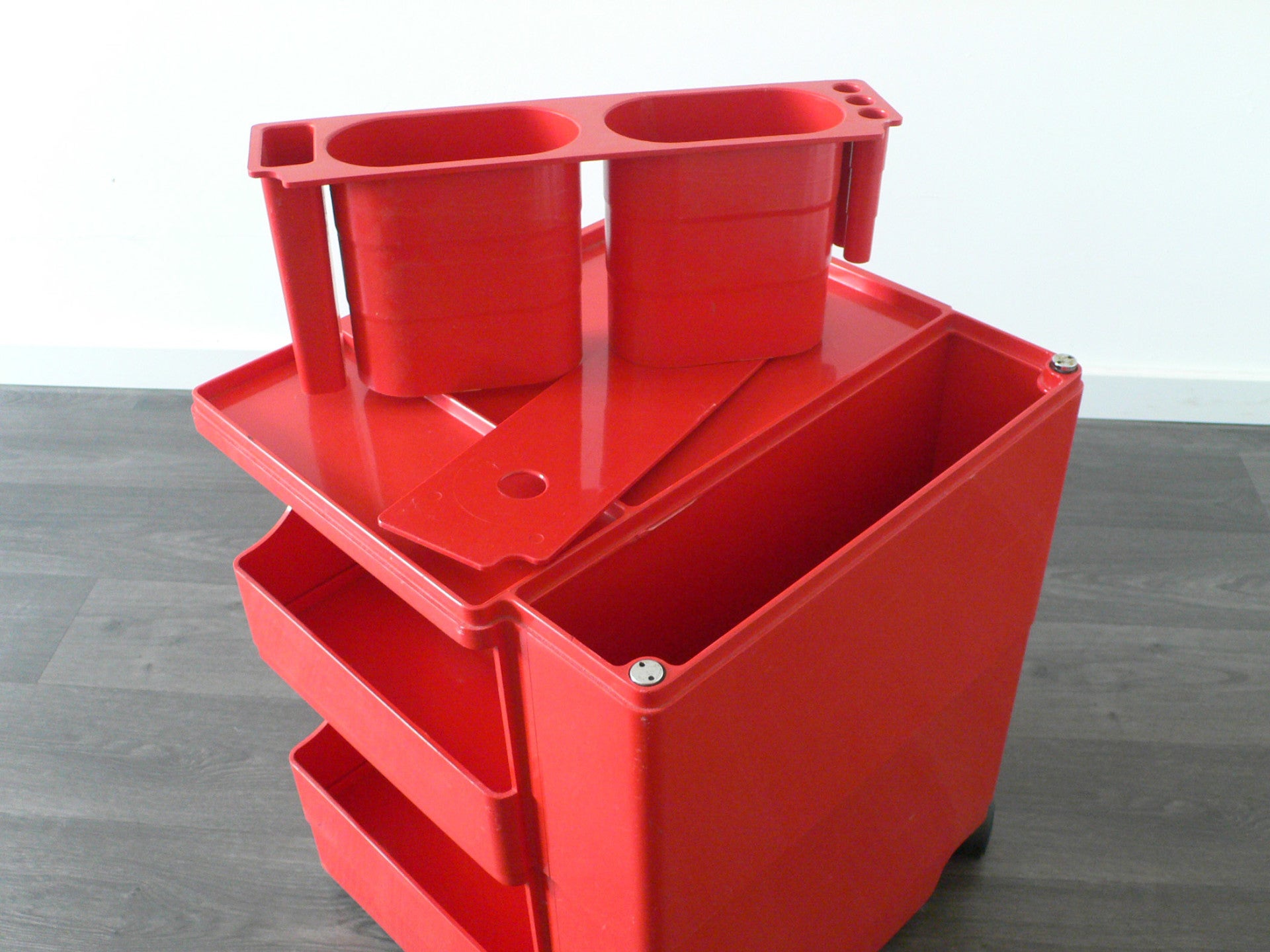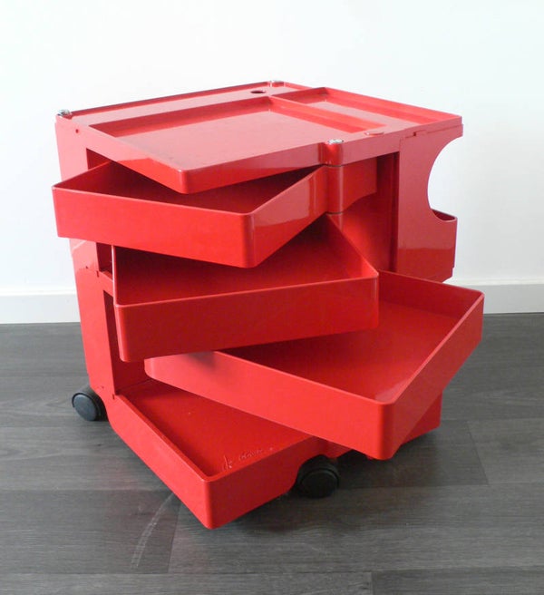 A vintage 1970's Joe Colombo Design BOBY 3 Desk Trolley in red. Beautifull condition. All complete. Made in Italy by Bieffeplast. 52,5cm high x 43cm x 41cm. Signed in mold.