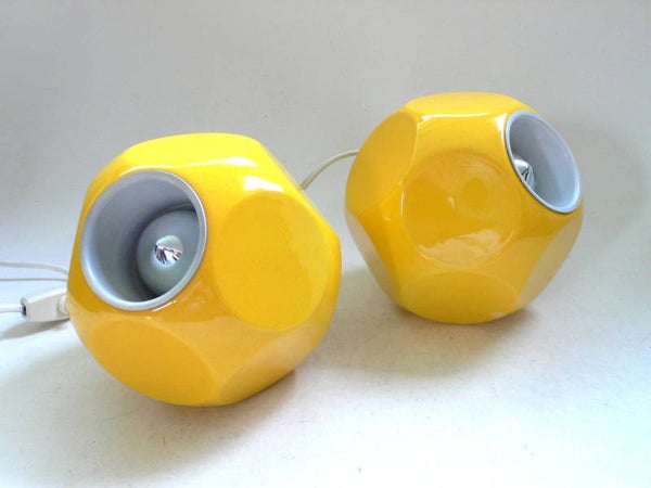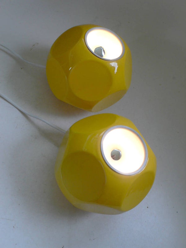 A really nice vintage 1970's Design set of 2 Ceramic Table Bedside Lamp Lamps Lights. Each 15cm x 15cm x 15cm. In pristine condition. No markings.