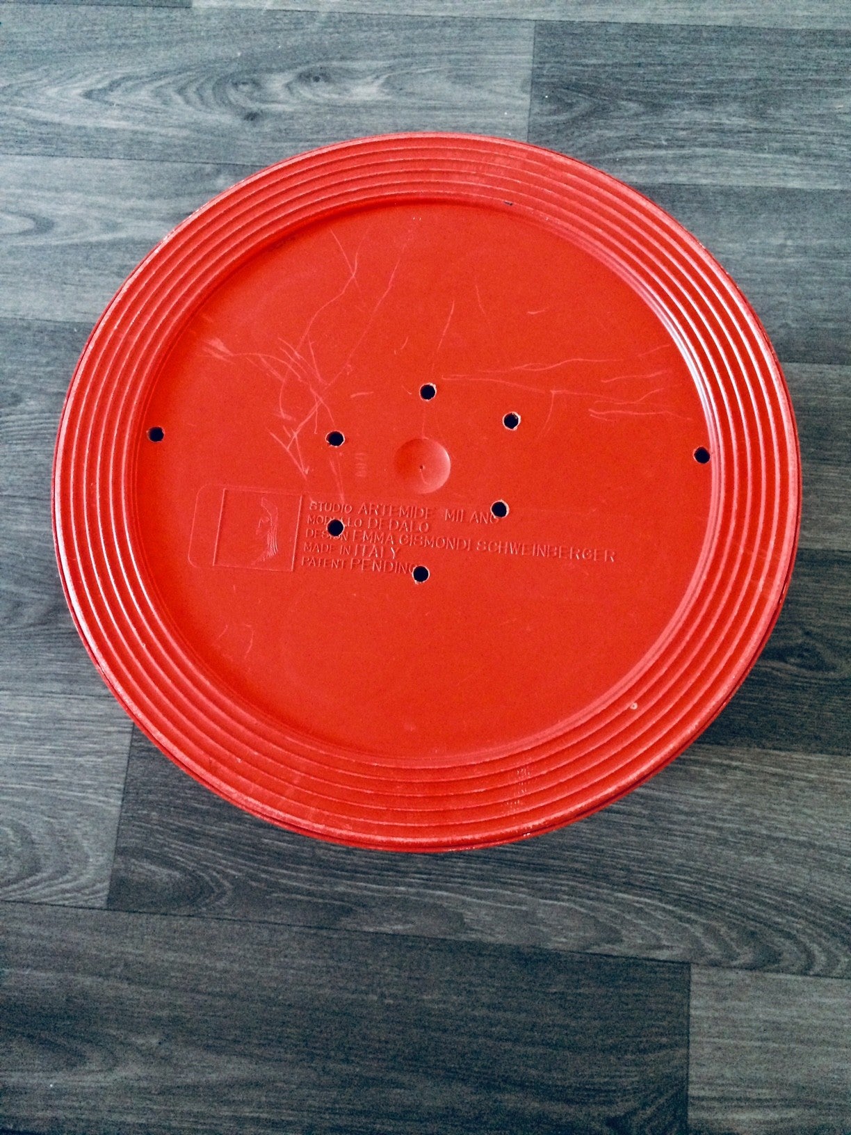 A vintage 1970's original Artemide Design DEDALO Umbrella Stand in red. Made in Italy by Studio Artemide. Design by Emma Gismondi Schweinberger. In very good used condition. 8 holes in bottom for drainage. 36cm high x 38cm x 38cm.