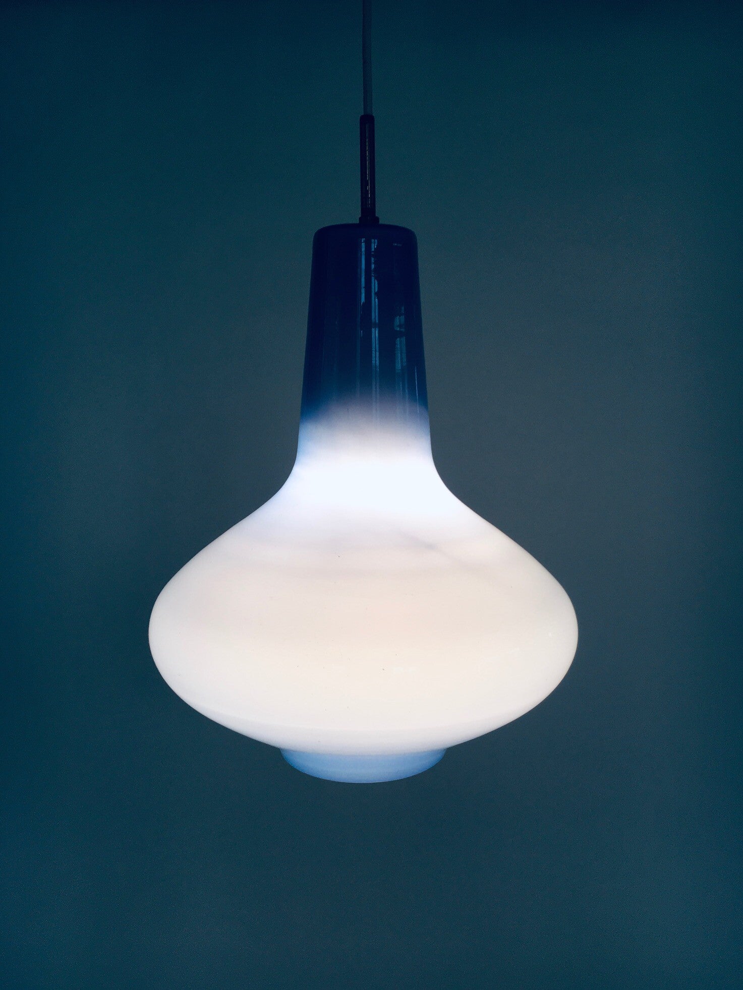 Opaline Blue Glass Pendant Lamp by Massimo Vignelli for Venini Murano, Italy 1950's