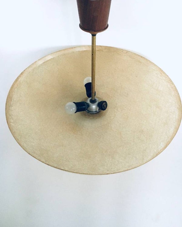 1950's Dutch Design Fiber & Teak Pendant Lamp