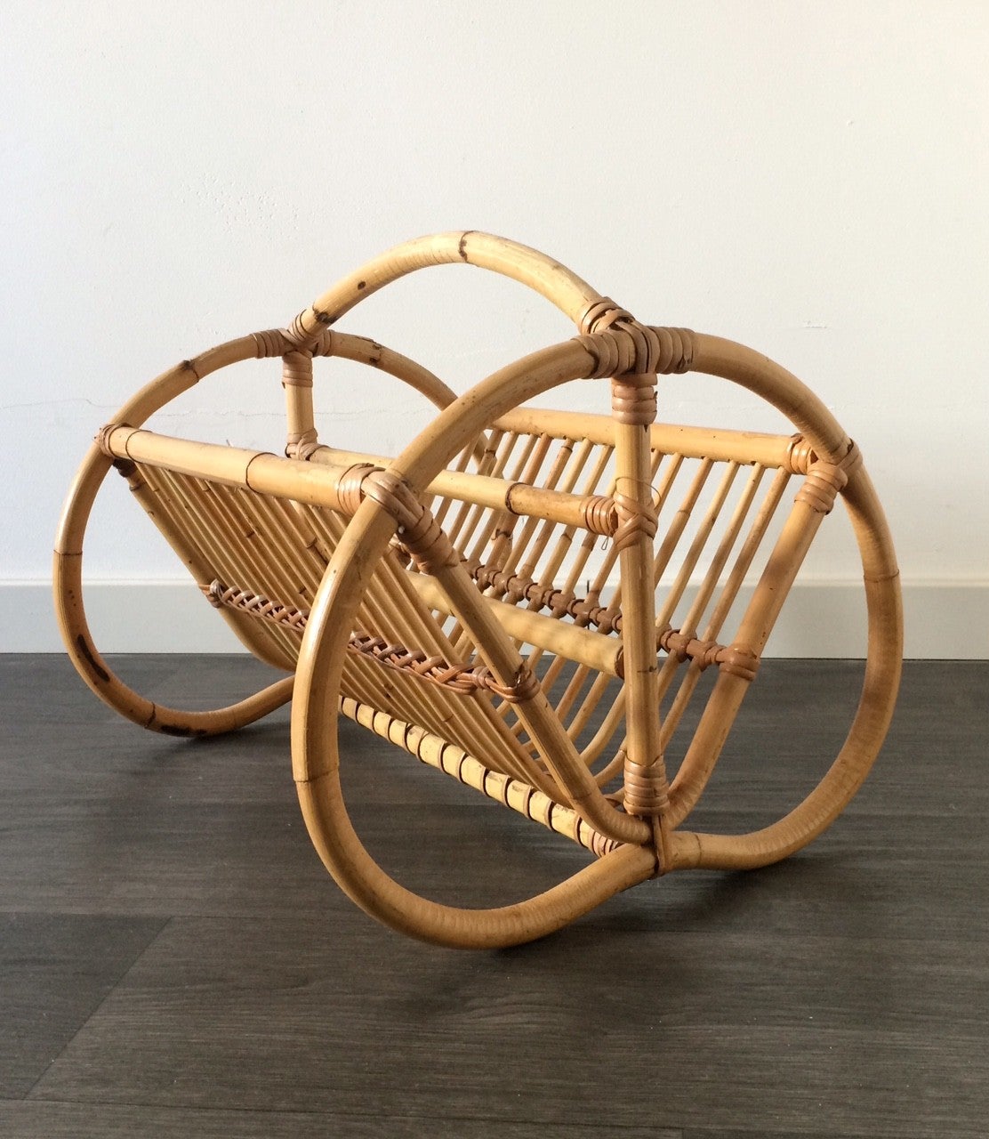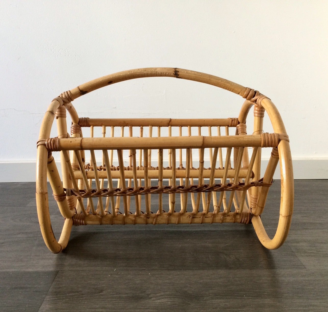 A vintage Midcentury Design 1960's Bamboo Magazine Basket. In super good condition. 45cm x 36cm x 39cm.