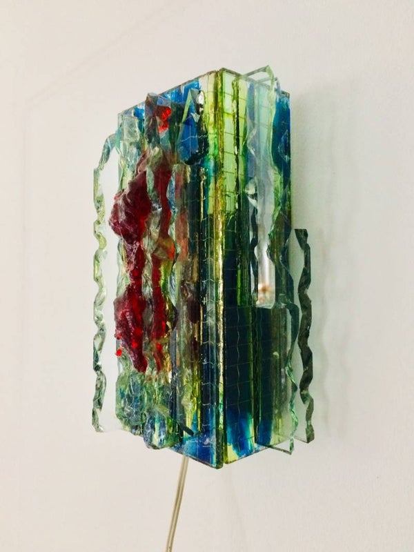 Midcentury Brutalist Glass Wall Lamp "Chartres" by Willem Van Oyen for Raak 1964