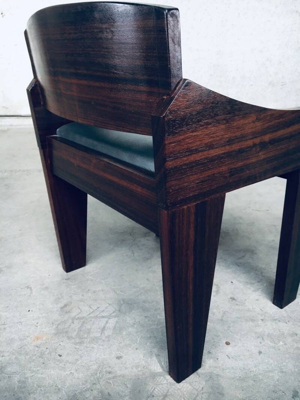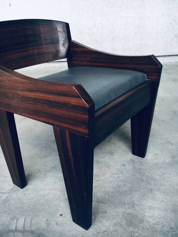 Vintage Midcentury Modern Brazilian Style Design Palissander Hardwood Stool Chair. Made in the 1950's. Well designed side chair. No maker markings or similar found for provenance. Solid Palissander hardwood constructed chair with grey faux leather padded seat. The back rest plate can be removed, the glue probably came loose in time. This does not affect sitting on it. Comes in very good, all original condition. Measures 71cm x 54cm x 57cm.