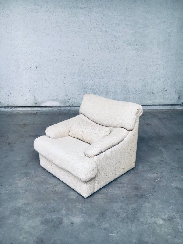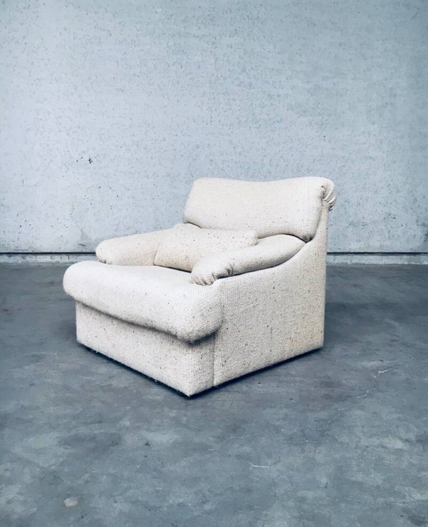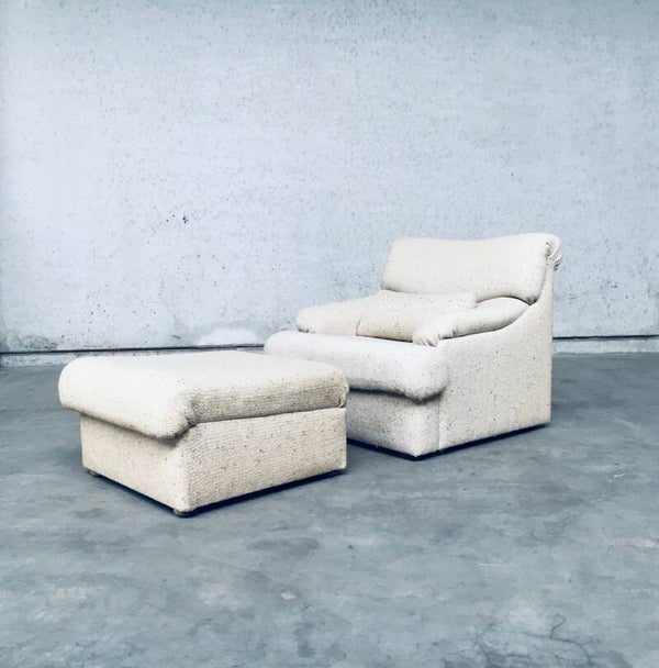 Vintage 1970's Italian Design Boucle Lounge Chair & Ottoman Set